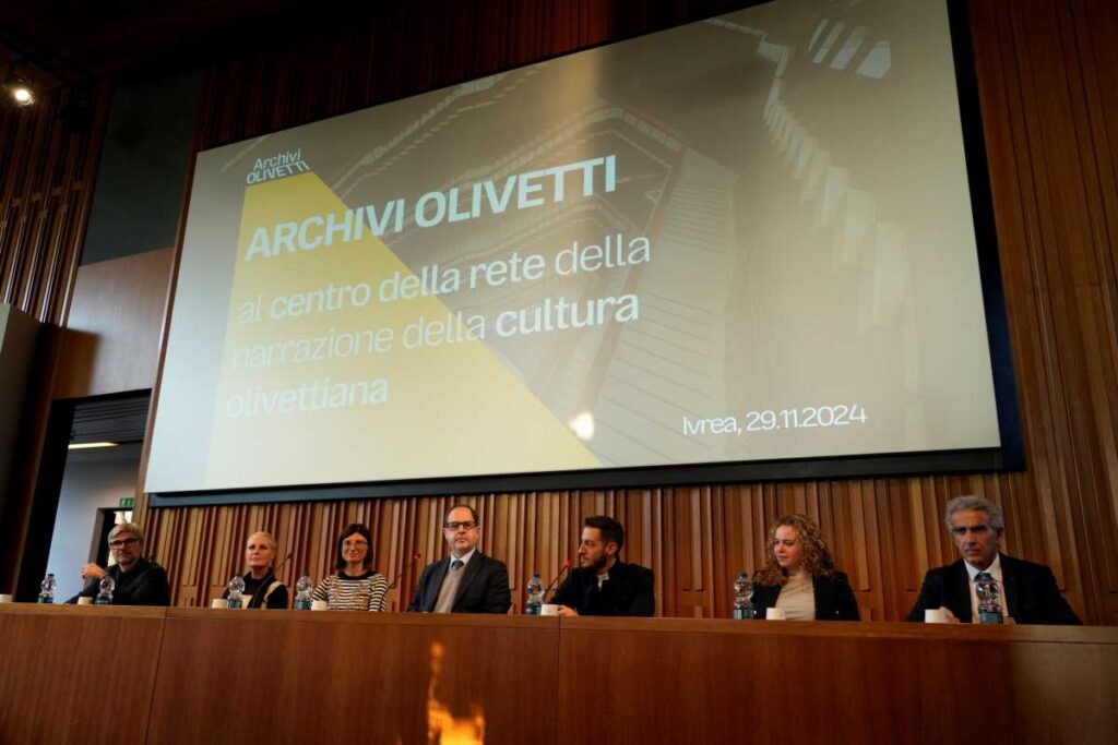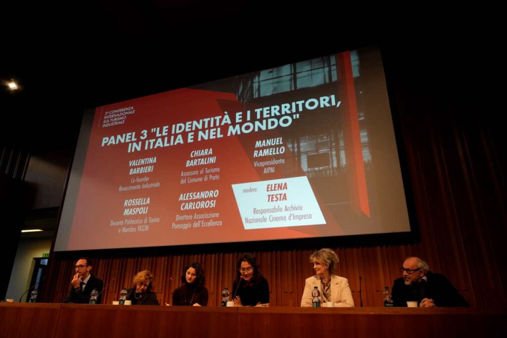 La Conferenza è stata anche l’occasione per coinvolgere esperienze di altri territori con il terzo panel “Le identità e i territori, in Italia e nel mondo”. Un dialogo moderato da Elena Testa, Responsabile dell’Archivio Nazionale Cinema d’Impresa di Ivrea, che ha visto dialogare ospiti provenienti da regioni diverse: Valentina Barbieri, Co-founder di Rinascimento Industriale, ente no profit diffuso tra Carrara, Parma, Milano e Roma che affianca le aziende nella riscoperta della propria identità e del proprio patrimonio; Chiara Bartalini, Assessora al Turismo del Comune di Prato, Città recentemente insignita del premio Corporate Heritage Awards 2024 dedicato al marketing del patrimonio storico-culturale; Manuel Ramello, Vicepresidente di AIPAI – Associazione Italiana Patrimonio Archeologico Industriale di Roma, associazione culturale senza scopo di lucro per la salvaguardia e la valorizzazione del patrimonio industriale italiano; Rossella Maspoli, Docente del Politecnico di Torino e Membro del TICCIH – The International Committee for the Conservation of the Industrial Heritage; Alessandro Carlorosi, Direttore dell’Associazione Paesaggio dell’Eccellenza di Recanati (MC), che mira a valorizzare il patrimonio industriale e artigianale delle Marche.