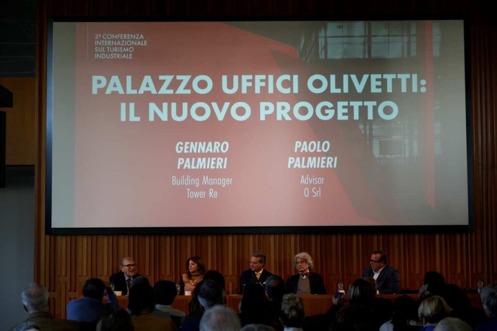 Tra i temi affrontati nel corso della prima giornata, il dialogo tra industria, cultura e turismo, con esempi concreti di edifici produttivi ancora in attività e spazi in fase di recupero. In quest’ottica, è stato presentato il progetto di riqualificazione di Palazzo Uffici Olivetti, illustrato da Gennaro Palmieri (Tower Re) e Paolo Palmieri (Advisor O Srl), che punta a reinterpretare gli spazi storici in chiave contemporanea.